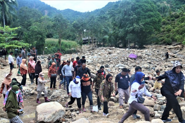 Mamuju, Inisulbar.com – Pasca banjir bandang melanda Kecamatan Kalukku, Kabupaten Mamuju, Sulawesi Barat (Sulbar), Bupati Mamuju, Siti Sutinah Suhardi, menyasar warga yang