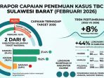 MAMUJU, INISULBAR.COM, – Capaian penemuan kasus Tuberkulosis (TBC) di Provinsi Sulawesi Barat pada Februari 2026 menunjukkan tren positif. Data Dinas Kesehatan, Pengendalian