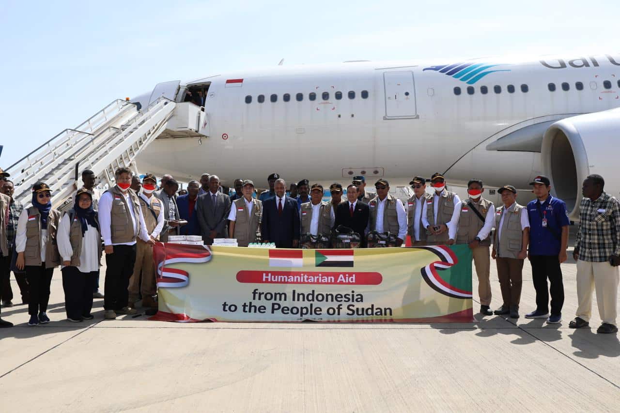 Setibanya di Sudan, rombongan delegasi Indonesia beserta bantuan kemanusiaan disambut oleh Menteri Kesehatan Sudan, Dr. Haitham Mohamed Ibrahim didampingi Dubes RI untuk Republik Sudan Sunarko dan jajaran. Bantuan kemanusiaan berupa obat-obatan, alat kesehatan, logistik dan beberapa barang sesuai permintaan Pemerintah Republik Sudan senilai kurang lebih 15 miliar rupiah dengan berat 12,44 ton kemudian diturunkan dari lambung pesawat sesaat setelah mendarat.