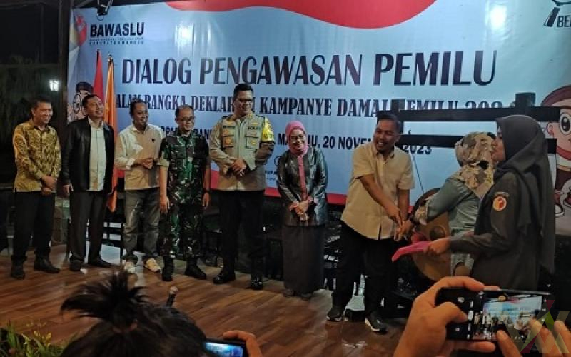 Mamuju, iS – “Bersama-sama kita semua, mari bergembira untuk mengawal Pemilu tahun 2024. Mengawas proses transisi kepemimpinan di negara kita ini,” Hal itu disampikan Ketua Bawaslu Kabupaten Mamuju, Rusdin dalam sesi dialog pengawasan sebagai rangkaian deklarasi kampanye damai Pemilu tahun 2024 yang dipusatkan di d’Maleo hotel Mamuju, Senin (20/11/2023).