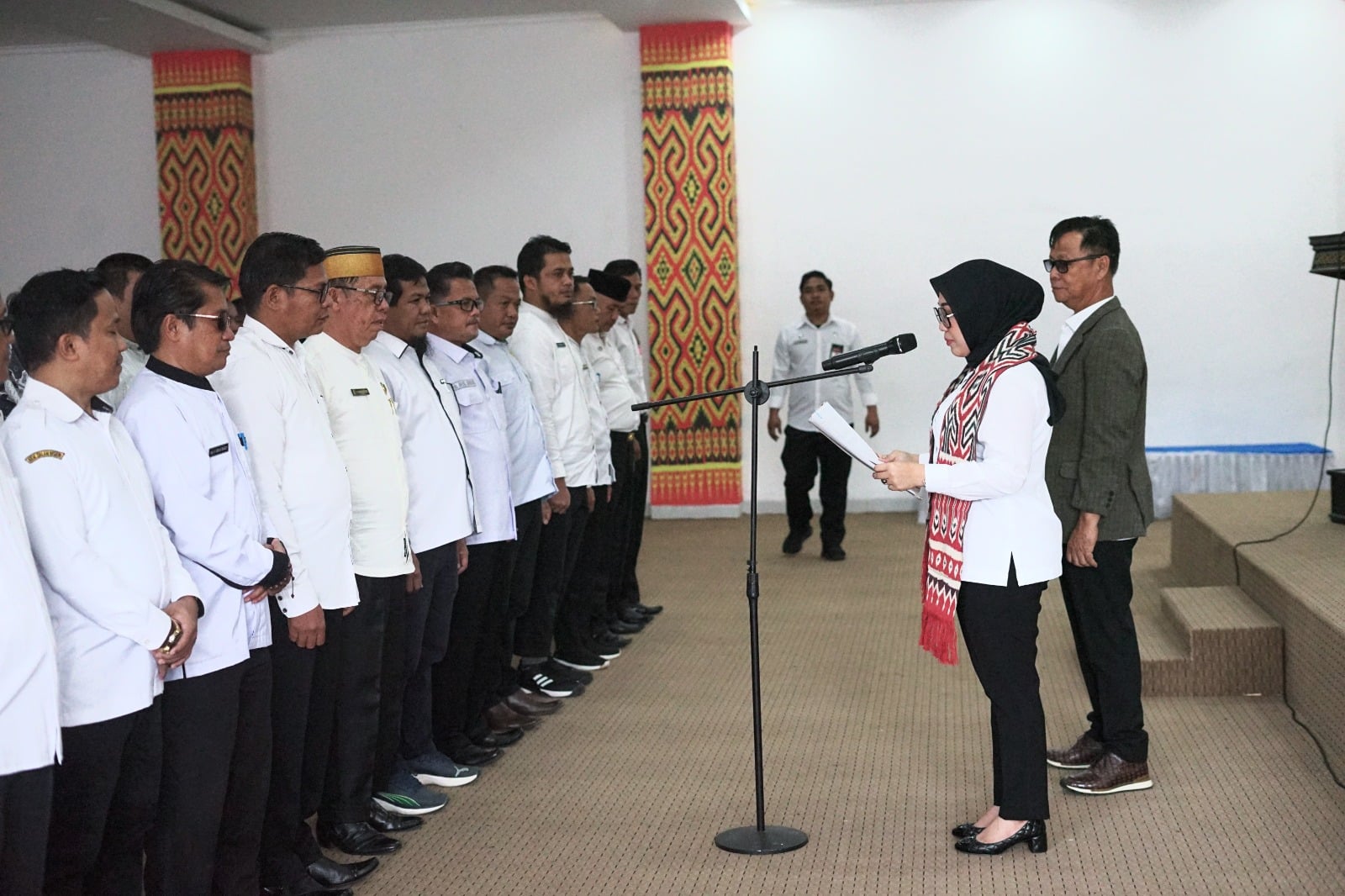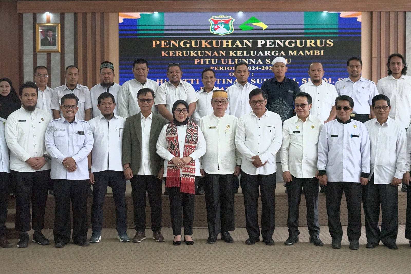MAMUJU, INISULBAR.COM,- Bupati Mamuju Dr.Hj.Sitti Sutinah Suhardi, mengukuhkan pengurus Kerukunan Keluarga Mambi Pitu Ulunna Salu (PUS) di aula kantor bupati mamuju, Rabu (5/3/2025).