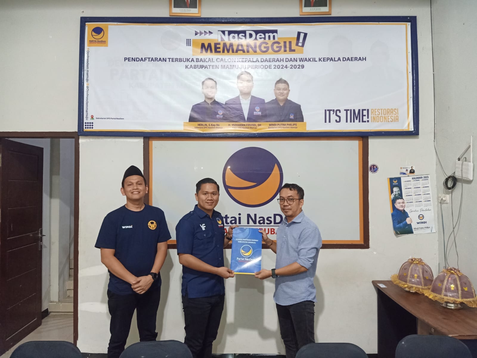 Diwakili oleh direktur Perspektif Mamuju, Yuslifar Yunus Djafar, giliran partai Nasdem yang disambangi Sutinah mendaftarkan diri dalam penjaringan bakal Calon Bupati Mamuju 2024.