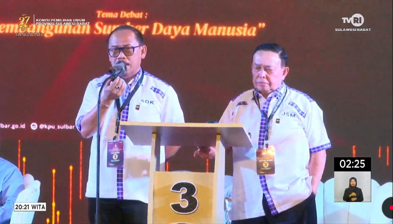 Mamuju, Inisulbar.com, – Dalam debat bertema Pembangunan Sumber Daya Manusia malam ini, pasangan calon Gubernur dan Wakil Gubernur Sulawesi Barat, Suhardi Suka dan Jenderal Salim Mengga (SDK-JSM), memaparkan visi besar mereka untuk membawa Sulawesi Barat menjadi lebih maju dan sejahtera.