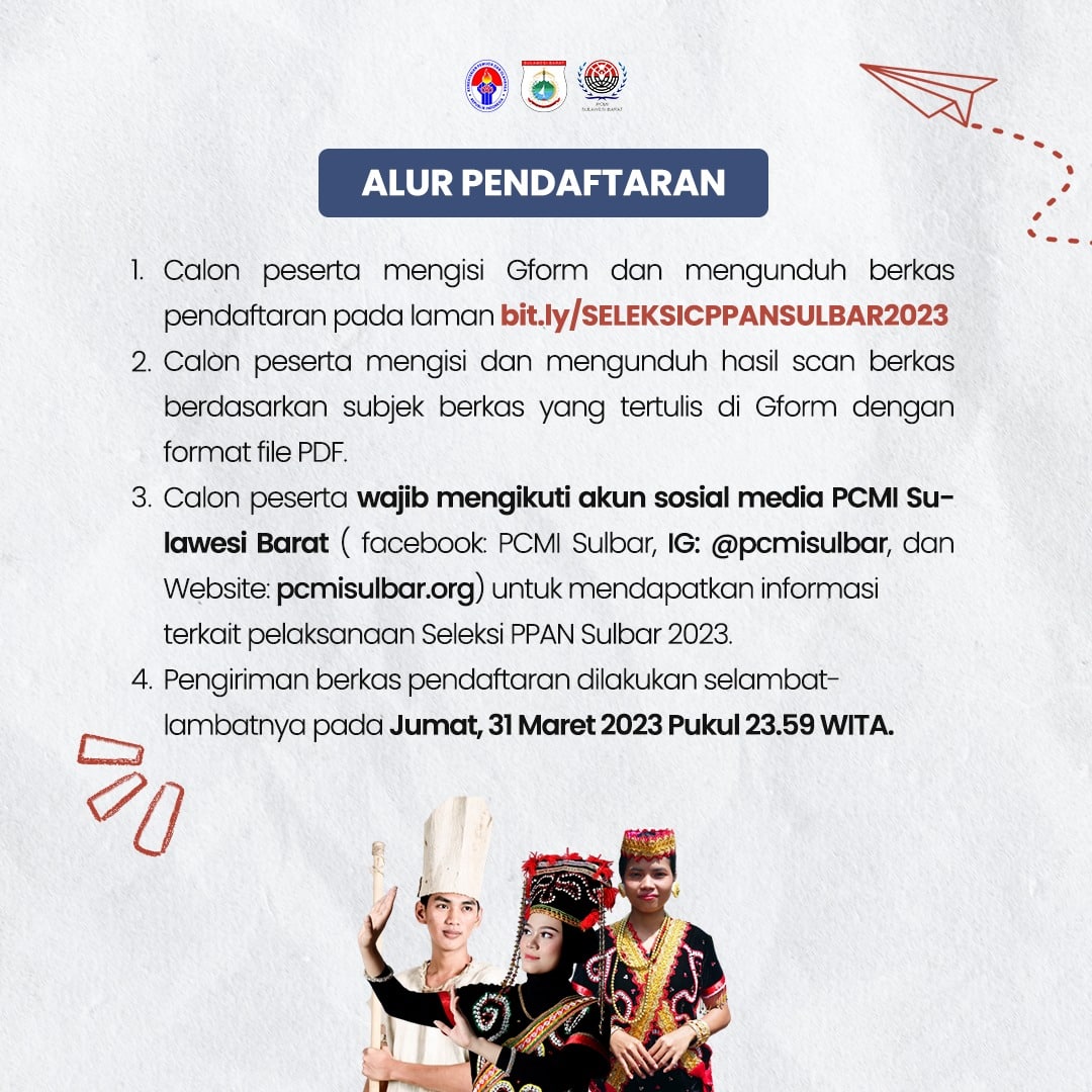 Untuk informasi pendaftaran selengkapnya dapat dicek akun instagram @pcmisulbar. Batas pendaftaran sampai dengan Tanggal 31 Maret 2023.