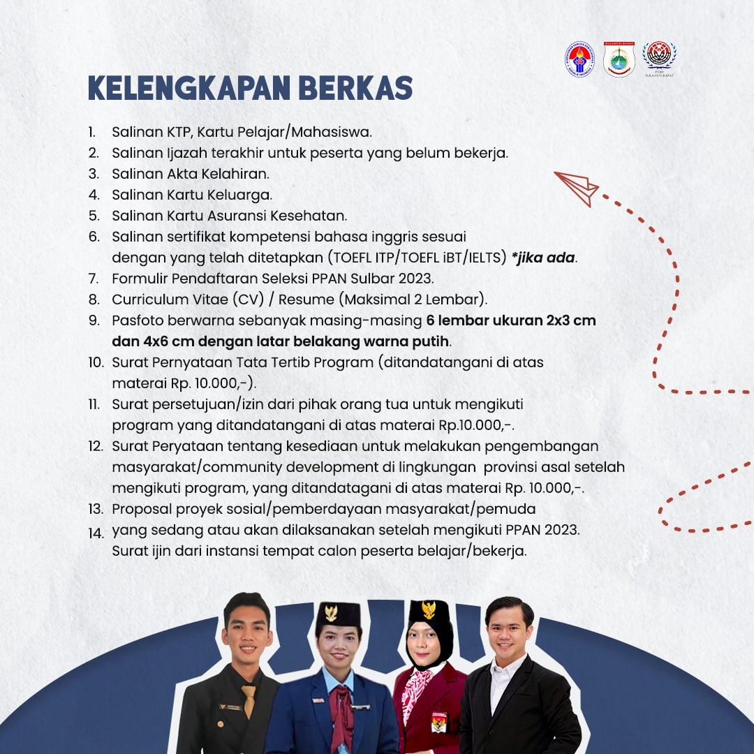 Mamuju, Inisulbar.com — Kabar gembira untuk seluruh pemuda Provinsi Sulawesi Barat, seleksi pertukaran pemuda antar negara Provinsi Sulawesi Barat Tahun 2023 telah dibuka.