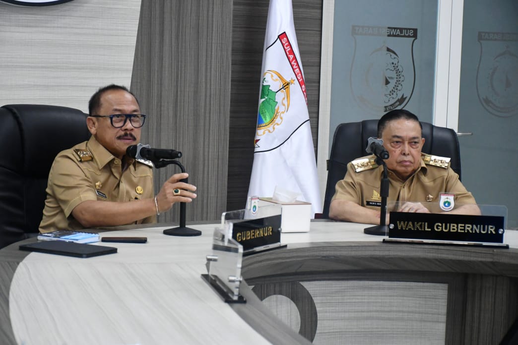 Turut hadir Wakil Gubernur Sulbar Salim S Mengga. Rapat digelar Ruang Oval Kantor Gubernur Sulbar. Senin (24/3/2025).