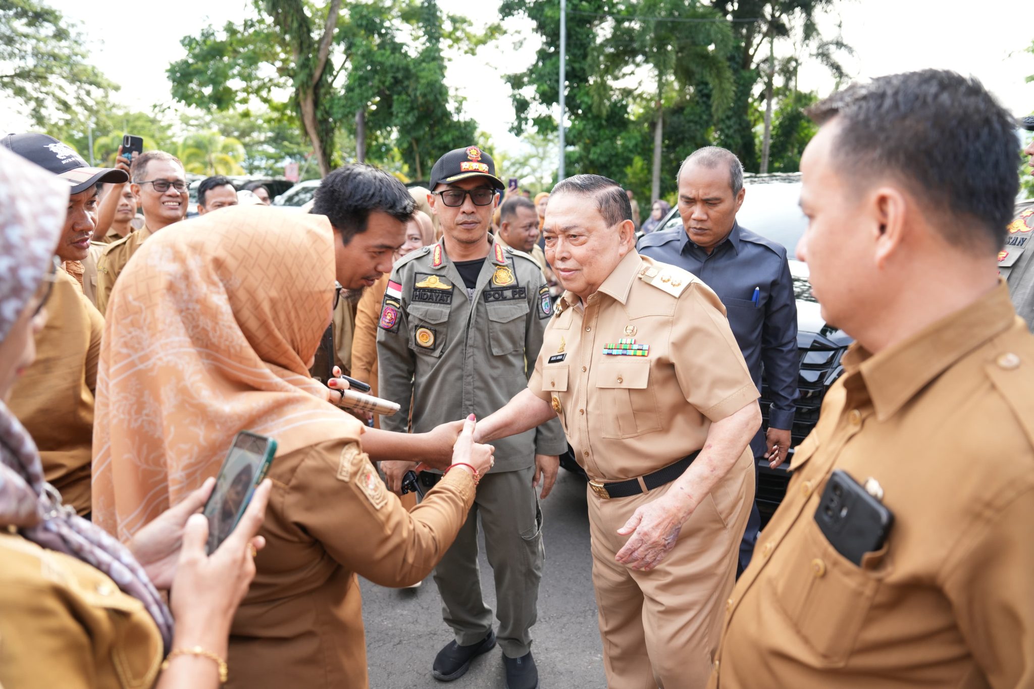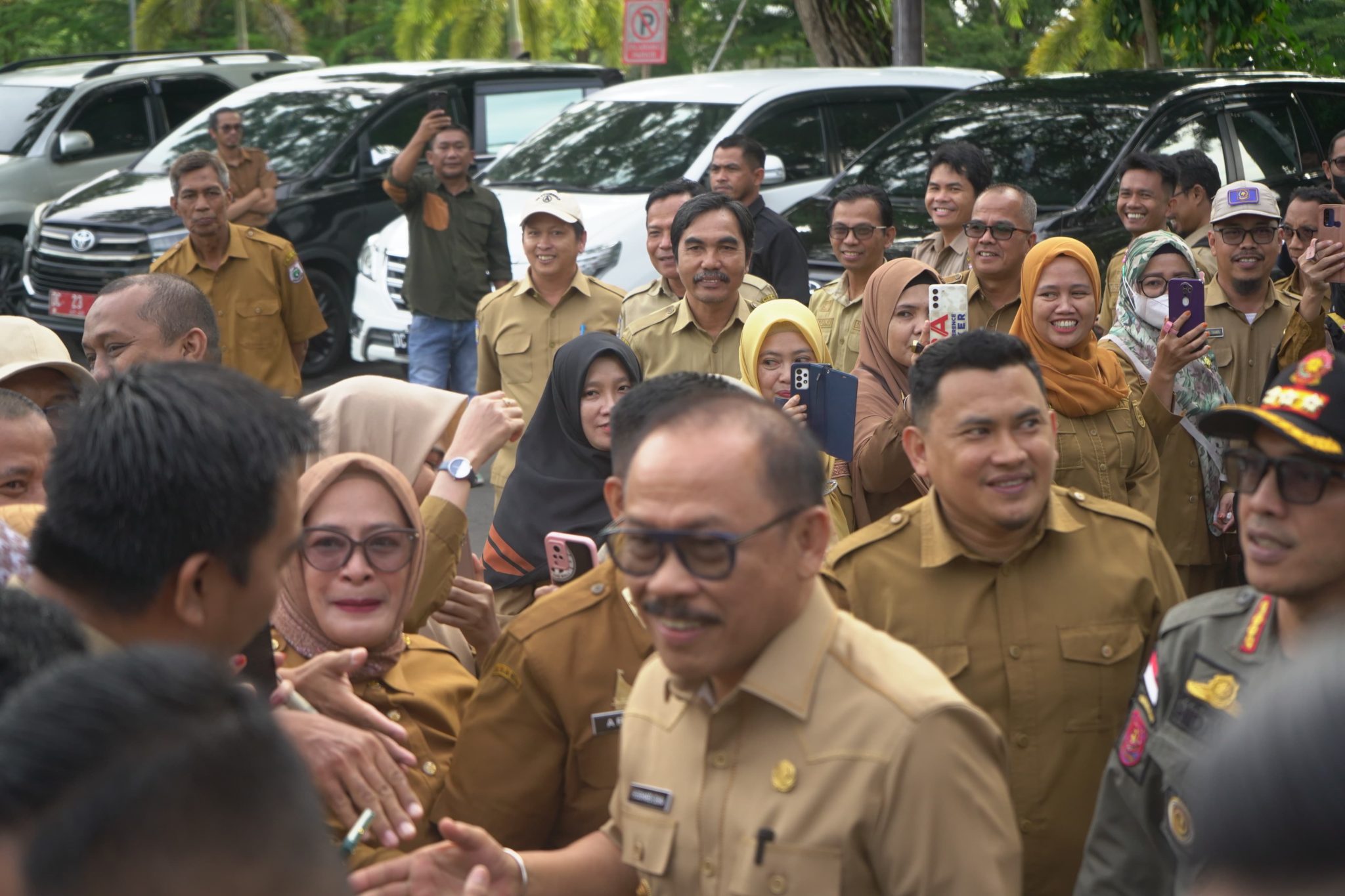 Di hari pertamanya ngantor, SDK bersama Wagub, Salim S Mengga disambut para ASN dan non ASN lingkup Pemerintah Provinsi Sulbar di halaman Kantor Gubernur Sulbar