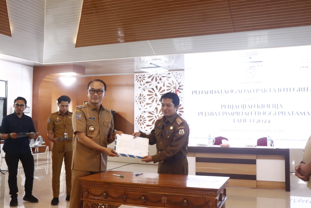 Hal itu ditandai dengan penandatanganan Pakta Integritas dan Perjanjian Kinerja 2024 oleh seluruh OPD, disaksikan Pj Gubernur Sulbar Prof.Zudan Arif Fakrulloh, Selasa (2/1/2024).