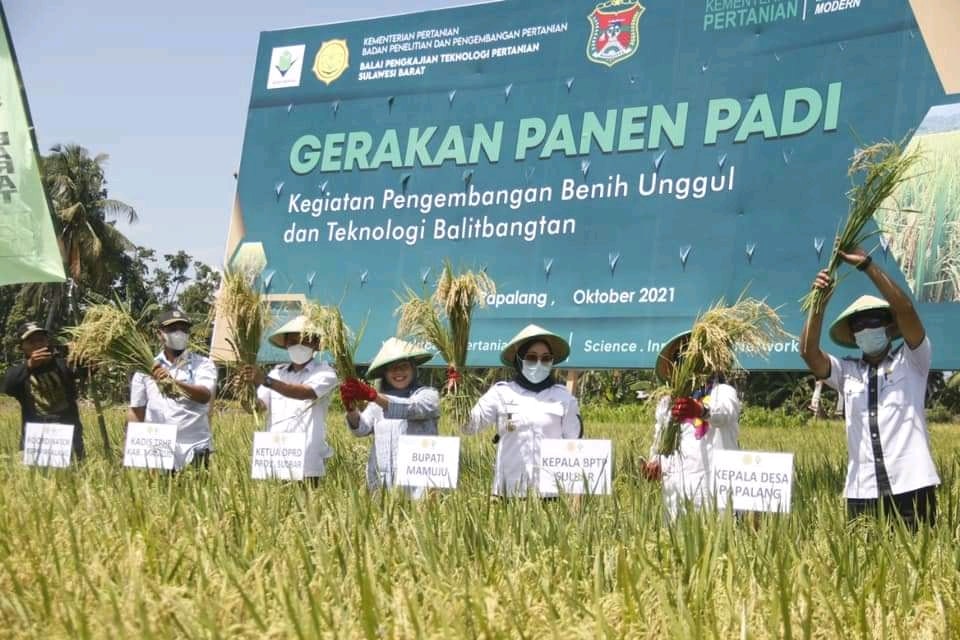 Mamuju, Inisulbar.com — Bupati Mamuju Mamuju Hj. Sitti Sutinah Suhardi menghadiri panen padi perdana oleh kelompok tani Paraita Kecamatan Papalang yang difasilitasi