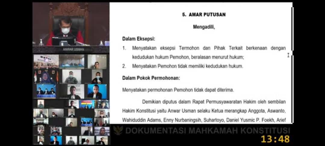 Mamuju, Inisulbar.com — Mahkamah Konstitusi (MK), melalui sidang lanjutan perkara nomor 122/PHP.BUP-XIX/2021 tentang Perkara Hasil Pilkada (PHP) Kabupaten Mamuju, secara resmi menolak