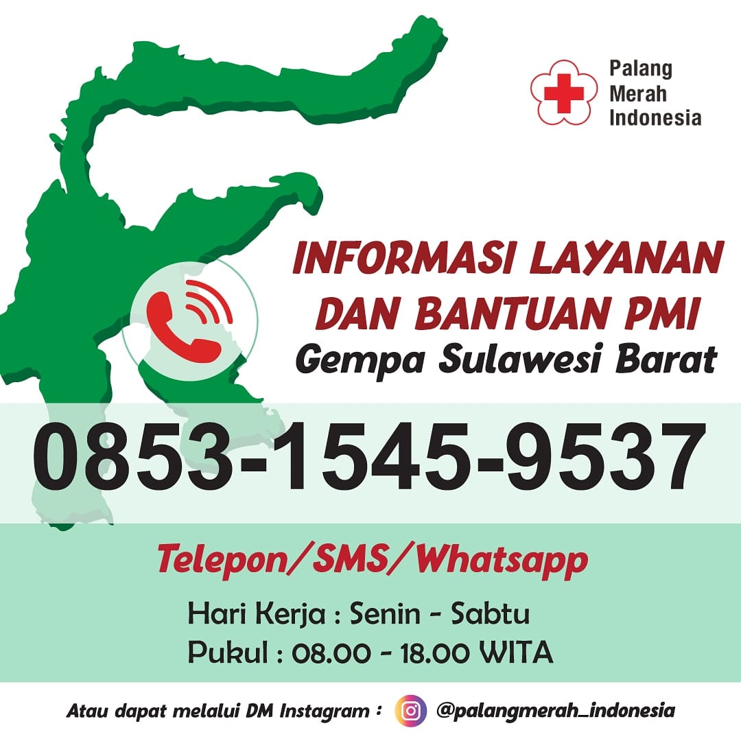 Mamuju, Inisulbar.com — Palang Merah Indonesia (PMI) meluncurkan nomor hotline informasi pelayanan dan bantuan yang bisa dimanfaatkan oleh penyintas/pengungsi gempa di Sulawesi