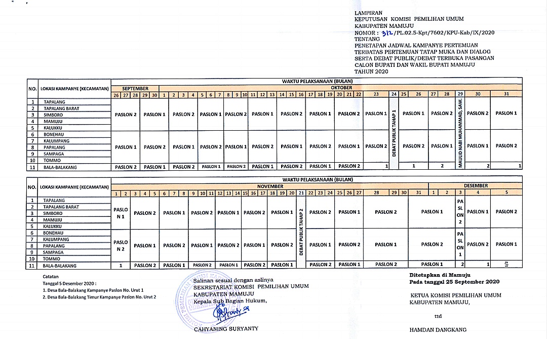 Pilkada Mamuju, KPU Ingatkan Kandidat Patuhi PKPU dan Protokol Kesehatan dalam Masa Kampanye