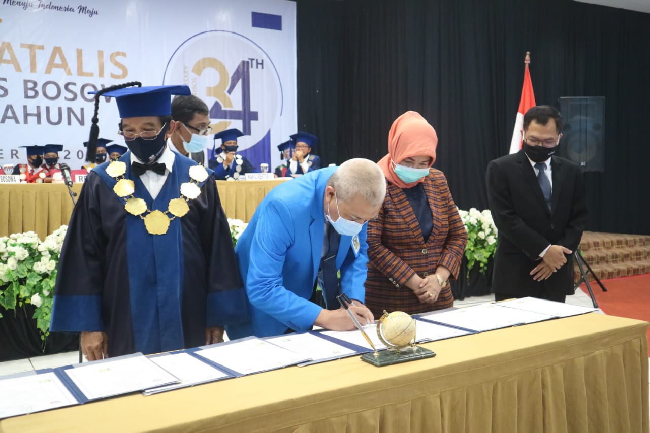 Penandatangan MOU yang dilaksanakan tersebut dirangkaikan dengan Dies Natalis ke-34 Universitas BOSOWA dan pengukuhan Guru Besar salah satu dosen di kampus yang dulu bernama Universitas 45 tersebut.
