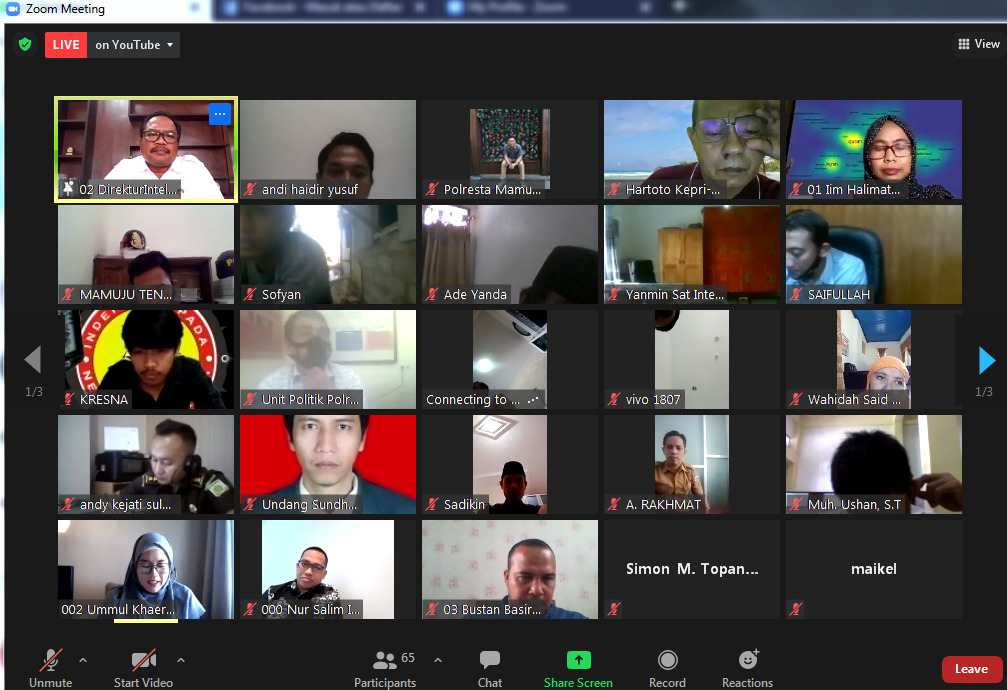 Mamuju, Inisulbar.com, -Forum Kewaspadaan DIni Masyarakat (FKDM) Sulawesi Barat menggelar Diskusi Virtual bertajuk Terpaan Ekstrimisme dan Terorisme di Dunia Maya, Selasa (1/11/2020)