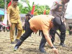 MAMUJU, INISULBAR.COM,– Penjabat Gubernur Provinsi Sulawesi Barat, Bahtiar Baharuddin bersama Kapolda Sulbar Irjen Pol Adang Ginanjar serta Forkopimda Sulbar melaksanakan penanaman jagung