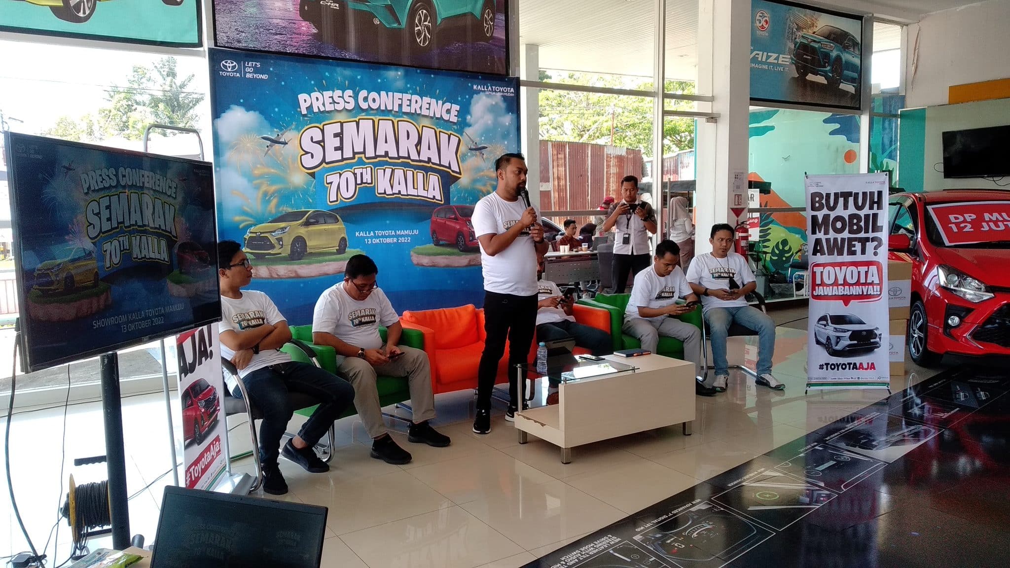 Mamuju, iS – Kalla Toyota menggelar press conference program penjualan di bulan Oktober ini yang berlangsung di Showroom Kalla Toyota, Mamuju (13/10/2022).