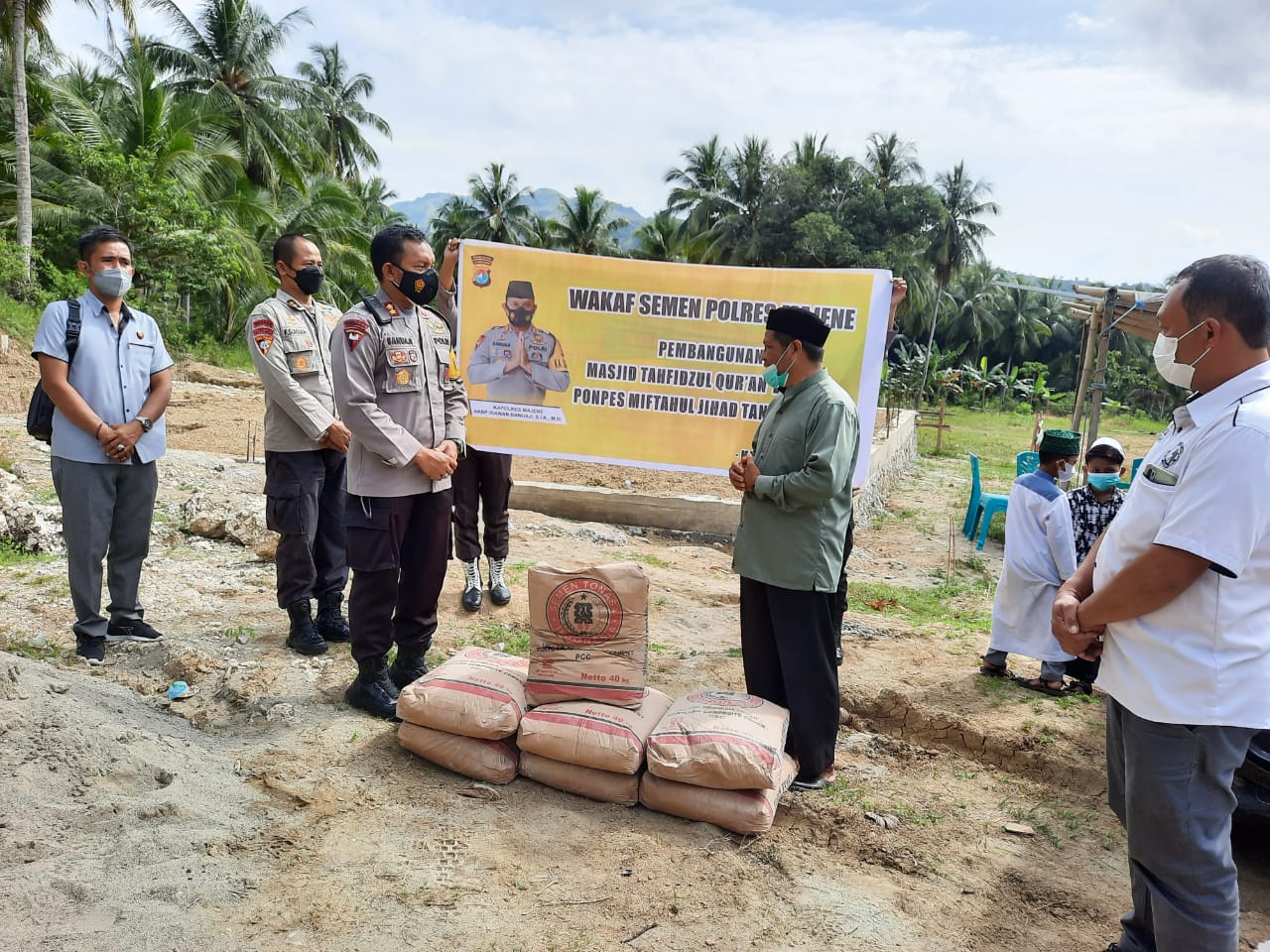 Kapolres Majene Serahkan 424 Bantuan Wakaf Semen Pembangunan Mesjid Tahfiz Qur’an Kampus II Ponpes Miftahul Jihad