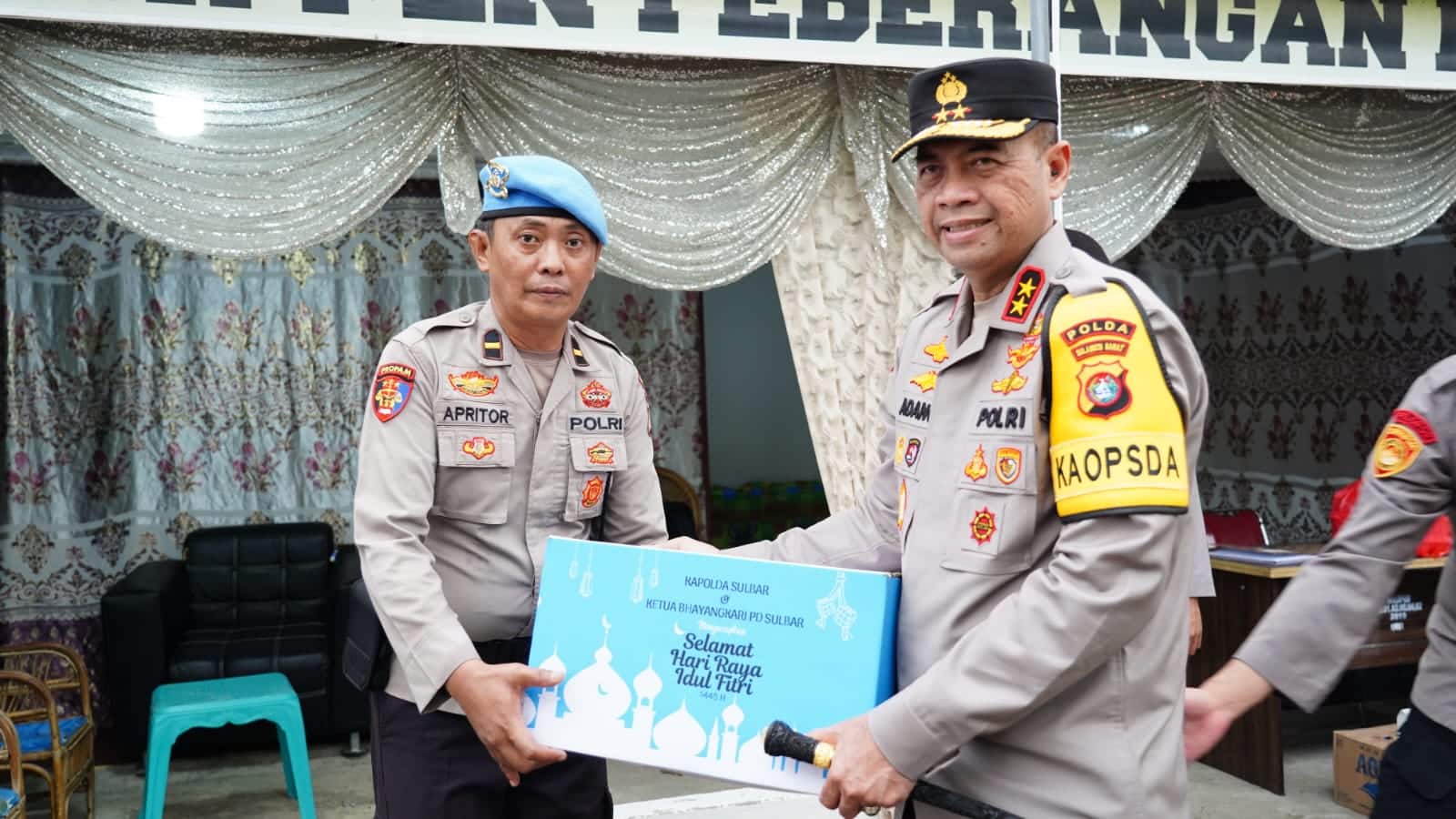 Sebagai bentuk apresiasi dan mendorong semangat personelnya, Kapolda juga berbagi bingkisan lebaran.