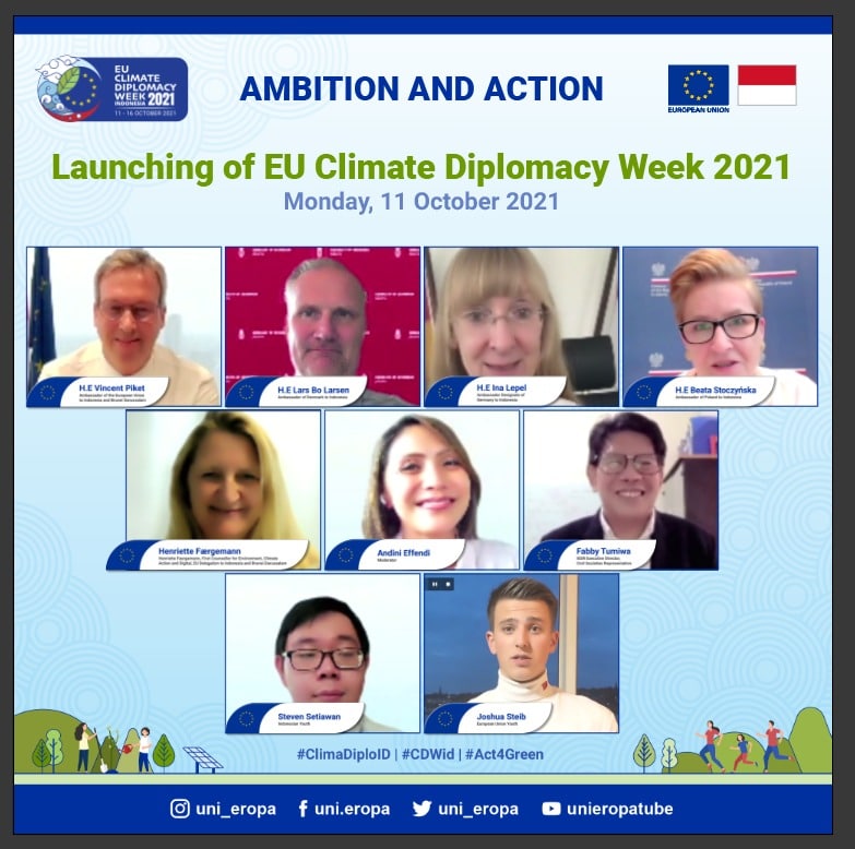 Jakarta, Inisulbar.com — Uni Eropa bersama kedutaan besar Negara-negara Anggota Uni Eropa di Jakarta meluncurkan Pekan Diplomasi Iklim (Climate Diplomacy Week) di Indonesia, Senin (11/10/2021). Hal ini merupakan bagian dari kampanye global tahunan untuk mendorong kolaborasi dan aksi positif terkait perubahan iklim.