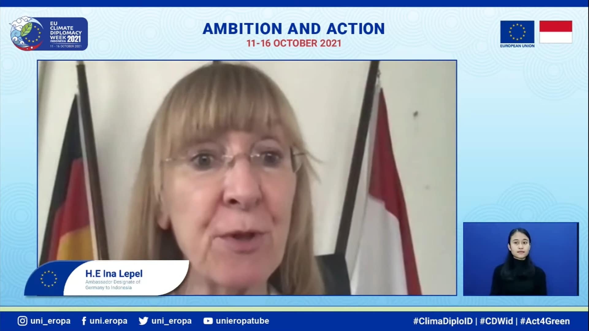 “Krisis iklim adalah krisis planet. Oleh karena itu pengurangan emisi harus menjadi upaya kolektif global. Selama lima hari ke depan akan ada 15 kegiatan yang menunjukkan bahwa kita peduli, kita mampu, dan kita melakukannya – untuk meningkatkan aksi kolektif di berbagai kelompok masyarakat. Kita semua memiliki kepentingan yang sama untuk menjaga agar target 1,5°C tetap dalam jangkauan. Semoga kegiatan ini dapat menginspirasi terciptanya kerjasama untuk mewujudkan berbagai aksi yang dapat kita lakukan bersama untuk bumi yang lebih sehat,” tutup Duta Besar Piket.