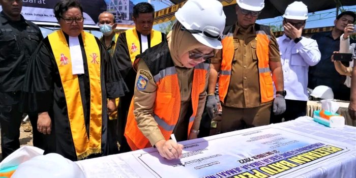 Mamuju, Inisulbar.com — Bupati Mamuju Hj. Sitti Sutinah Suhardi, bersama wakil bupati Ado Mas’Ud bersama PJ Gubernur Sulbar Akmal Malik hadir dalam peletakan Batu pertama pembangunan gereja Toraja yang berada di Jl. Atiek Sutedja Mamuju. Senin, (31/10/2022).
