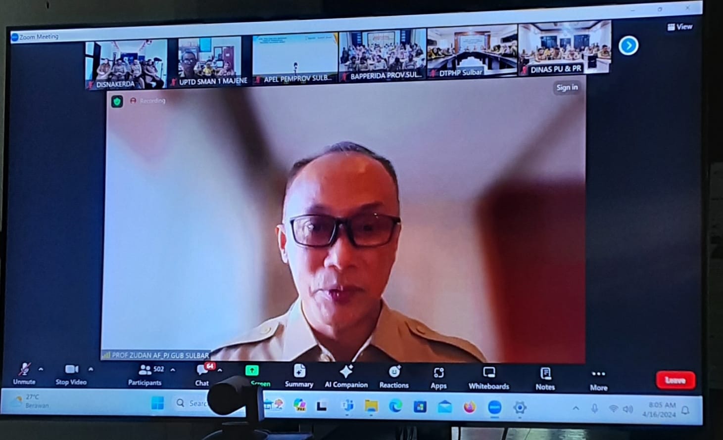 Mamuju, Inisulbar.com,- Pada apel pagi via Zoom yang dilasanakan untuk menyambut kembali para pegawai setelah libur Lebaran, Penjabat Gubernur Sulawesi Barat,Prof. DR. Zudan Arif Fakrulloh mengungkapkan apresiasi yang mendalam terhadap upaya pelestarian kebersihan dan keamanan di lingkungan kantor, Selasa (16/4/2024).