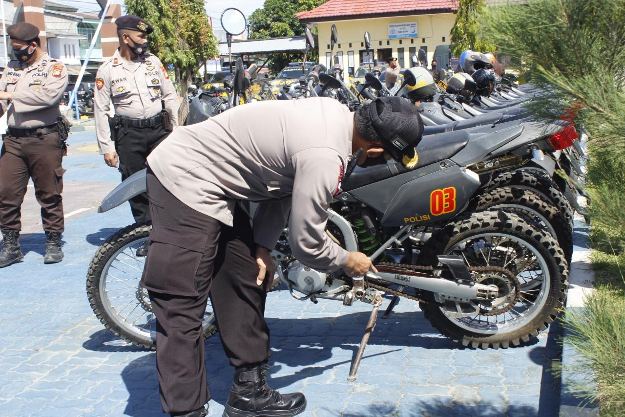 Majene, iS –Guna menunjang kelancaran pelaksanaan tugas di lapangan memjelang Pemilihan kepala daerah (Pilkada) di kabupaten majene, Kapolres Majene AKBP Irawan Banuaji, SIK, M.Si melakukan pengecekan kendaraan dinas roda dua (R2) milik Sat. Sabhara Polres Majene usai pelaksanaan apel pagi di Mako Polres Majene rabu (26/8/2020).