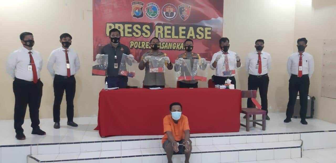 Pasangkayu, iS — Waka Polres Pasangkayu Kompol Ade Chandra C.Y., S.I.K., M.Sc didampingi Kabag Ops AKP Eduard Steffry Allan Telussa, S.I.K., M.Si, Kasat Reskrim IPTU Ronald Suhartawan Hadipura S.T.K., S.I.K., M.H dan KBO Sat Reskrim IPDA Iss Haryanto serta Kanit Pidum IPDA Firman Sanusi S.H pimpin Release Kasus Curat dengan cara pelaku memasuki rumah Korban yang sementara melaksanakan Sholat Idul Adha 20 Juli 2021 Lalu.