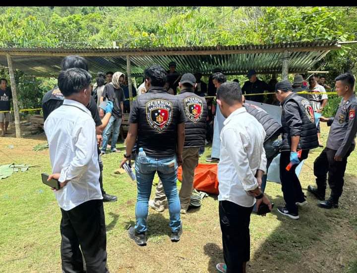 Setelah mendapat laporan dari warga, kepolisian Polsek Sumarorong dan tim medis langsung menuju ke TKP untuk melakukan visum dan mengamankan tempat kejadian, namun tak disangka pelaku kembali dari hutan dan membabi buta dengan memegang senjata tajam.