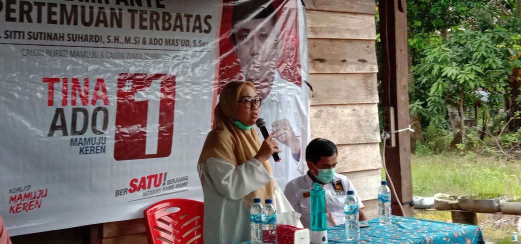 Mamuju- Pasangan Calon nomor urut 1 Sitti Sutinah Suhardi dan Ado Mas’ud melakukan kampanye terbatas di Matius pilal Desa Kakulasan, Kecamatan Tommo, Senin(16/11).