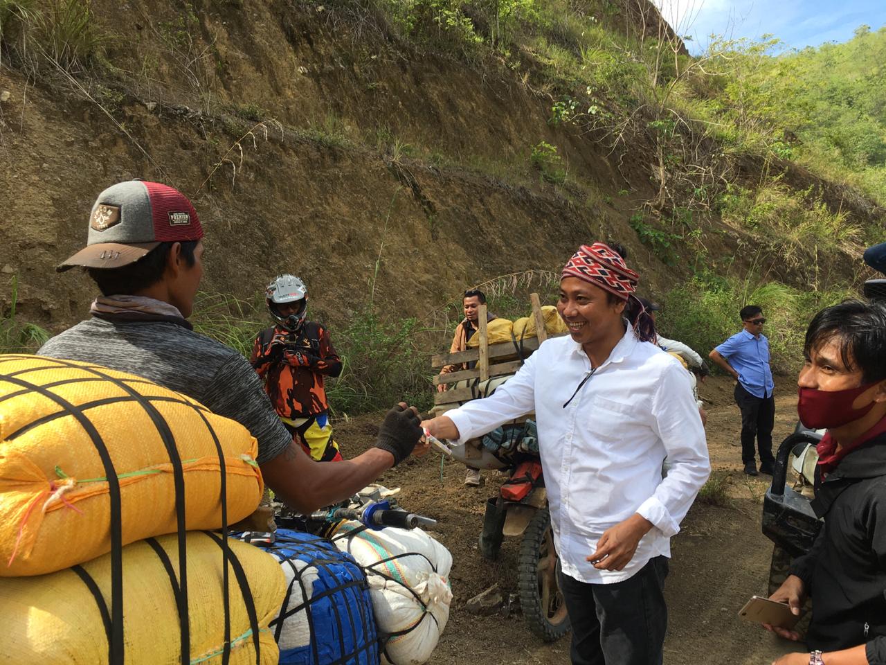 Akses jalan yang curang, berbatu dan berlumpur dilahap demi menyapa warga disana, bahkan Ketua DPC PDI Perjuangan Kabupaten Mamuju itu, sempat beberapa kali terjatuh menyusuri jalan setapak disana.