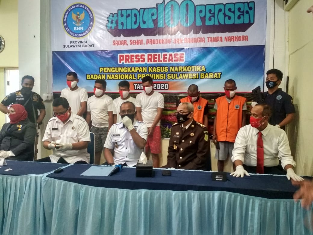 Hal itu diungkapkan saat BNNP Sulbar menggelar Press Rilis pengungkapan kasus narkoba, Senin (17/8/2020) yang berlangsung di Kantor BNNP Sulbar. Sebanyak 250 gram sabu beserta 6 orang tersangka ditangkap dalam pengungkapan kasus tersebut.
