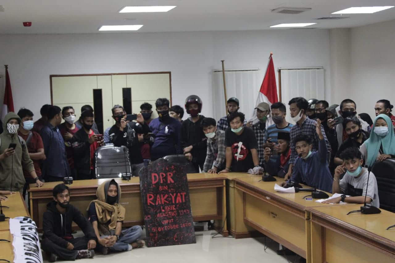 Aksi tersebut, dilakukan sebagai bentuk penolakan atas disahkannya Undang-undang Omnibus Law Cipta Kerja oleh DPR-RI bersama dengan pemerintah, Senin, 05 Oktober 2020 lalu.